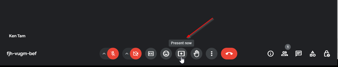 2 – Click on the Box with an arrow icon, Present now